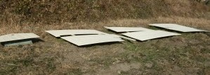 シートをはがしたまま 合板を日に当てて 帰宅。 (屋根代わりのブルーシートはそのまま)