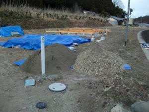 水道と電気を敷地内に引き込む相談を、工事業者の人と現地で行った。