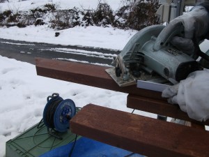 前日の雪をひきずって ときどき みぞれ降る中での作業となった。