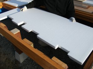 (あの重〜いアスファルトリーフィング。 切って張るのだけど 風が吹くと びりっといってしまうという・・・)