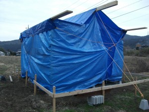 雨はときおりぱらついているから 再び 合板にブルーシートをかけて 東京に戻った。