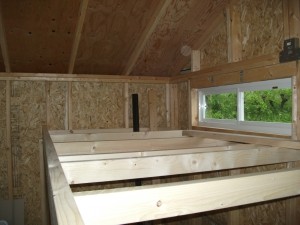 寝棚。 落下防止柵はこれからだけど、小窓からいい風が吹き込んで,昼寝サイコウ!