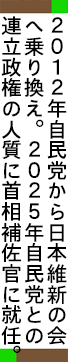 人質として首相補佐官に 「吸収されて無くなる党ならそれだけの党だ」。無くなれば新党を結成すれば良いだけの話。学歴より人間性。公明も維新も国民も耳が遠いから主役は絶対無理 |