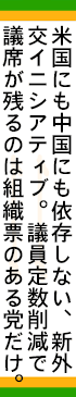 維新は民主主義を破壊する 維新は「身を切る改革」というが切られるのは君だ。代表の議員を減らすと政治がより遠くなる。色々な民意を吸い上げて国を作っていく民主主義が危うくなる |