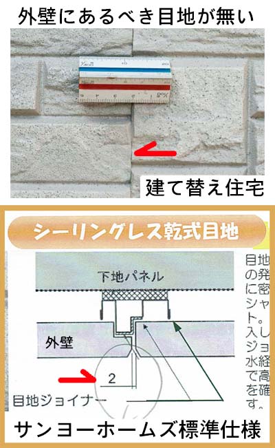 建て替え住宅散々へ −−−−−−−−−−−− ![]() −−−−−−−−−−−− 外壁は両端が固定で伸縮目地なし。スライド不可能。 |