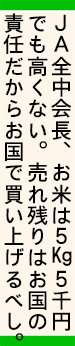 米農家の利益代表JA農協が米の生産量や流通量を制限すれば米価はJA農協の思うまま。古米と輸入米を年中流通させる必要がある。 |