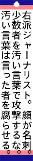 | 弱い者を踏みつけて得意げに笑っている奴はクズだ。嘘を幾ら重ねても事実にはならない。詭弁を得意がる人を信じてはいけない。 | ||||