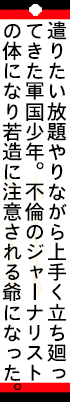 総裁は消去法の残りもの 金・SEX・酒にだらしない人は困るが、ノンカロリー・ノンアルコール・プリン体ゼロでは政治はできない。 |