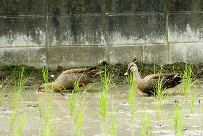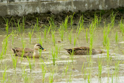 ↑カルガモ、ほん近くの田にいました。 2009/6/13 |