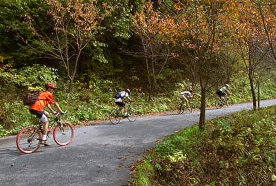 観音峠付近を下る 山ブドウ取り,登山者などいる