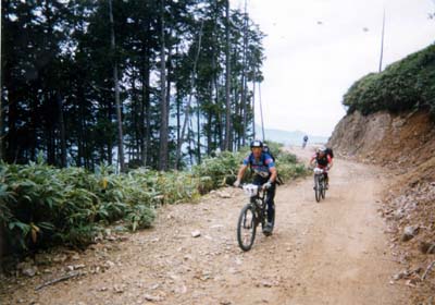 最初のMTBステージ 雄大な御嶽山を眺めながらの すばらしいコース (約35km) |