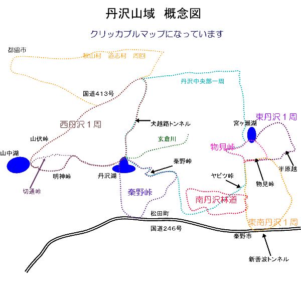 東南丹沢1周 東丹沢1周 物見峠 南丹沢林道 秦野峠 西丹沢1周 コース紹介へ戻る