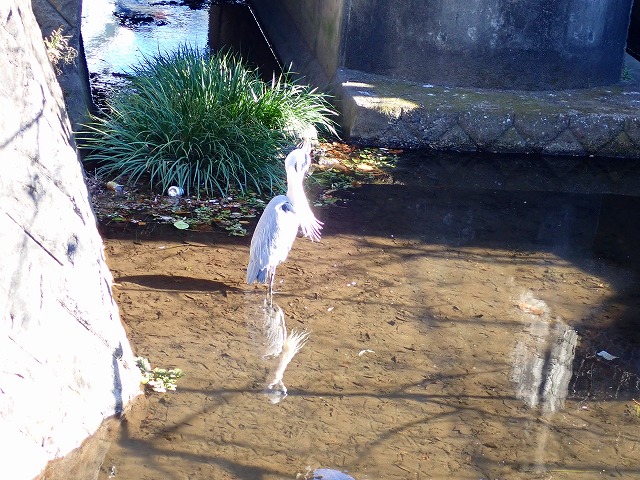 不動橋で、久しぶりにカワセミとアオサギに会えました!