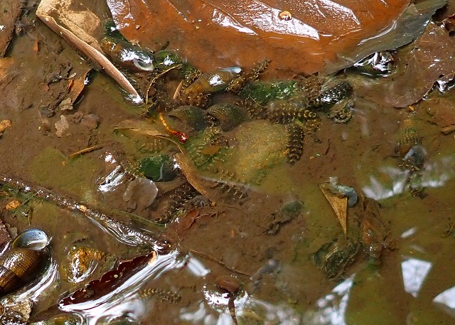 カワニナ約100匹。先ずは、水路の点検です。