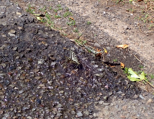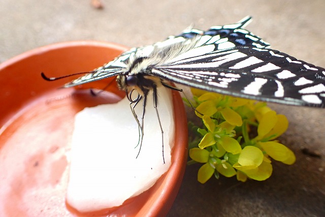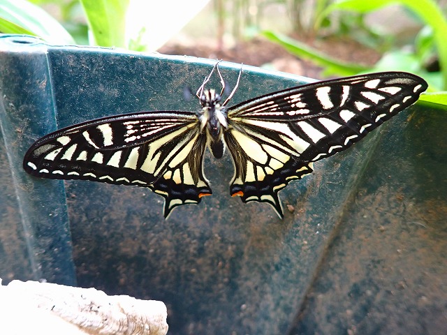 10日の朝、仕切り板で強風を避けていたナミアゲハの♂。