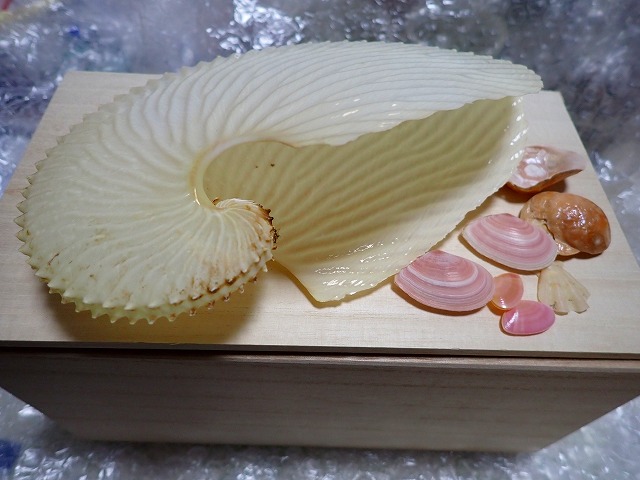 美しく繊細な形と殻。桐の箱に入れられて、無傷で届きました!