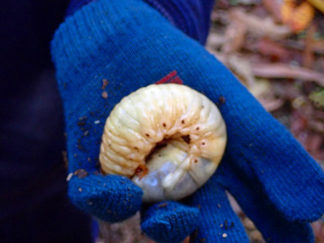 カブトムシの幼虫を触る体験は、毎年大人気!