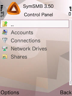 Control Panel の3つめ、Network Drives の中です。次ぎに示す設定で設定した、PCの共有フォルダや他の携帯電話のフォルダがリストアップされます。新しく設定したり、設定済みのものの編集を行います。