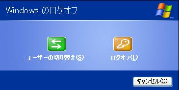 スタートボタンの「ログオフ」ボタンを押す事で、「Windowsのログオフ」画面が表示されます。