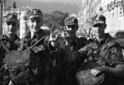 民族英雄の像の前でのローラースケート 東スラボニアの戦争に備えて出発する兵 前線の町オシェック土嚢が積まれていた ボスニアからの難民を支援するNGO 多くの難民がキャンプ場に収容された ボスニア難民を世話するのも難民だった