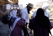 観光バスで大挙して訪れるイスラエル観光客にアラブのコーヒーを売る青年