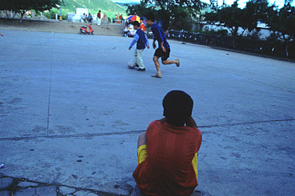 中国の子どもがサッカーで遊ぶのを眺めるだけの北朝鮮からの難民の子ども![]()