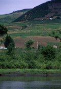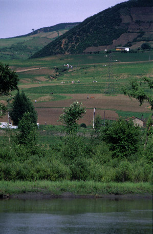 国境の川の向こうでは北朝鮮の農民たちが集団で農作業をしていた![]()