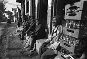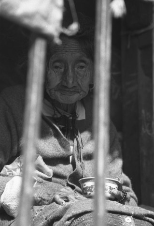 カトマンドゥのチベット難民キャンプ地 朝晩、老人たちは集まって陽なたぼっこ 絨毯織りは、収入の大きな位置を占める 女性でも暮らしの為には肉体労働もする 観光の町ポカラの町外れで土産物を売る マニぐるまを回しながら孫を学校に送る