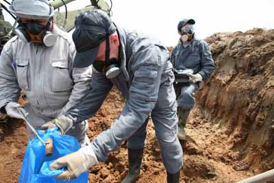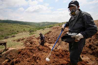 セルビア共和国での劣化ウラン弾の除去作業の現場