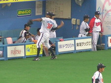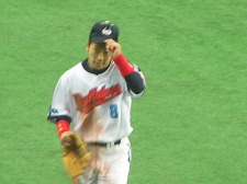 | 8回裏まだ投手交代の コールがないのに、 出てきちゃってる(笑) |