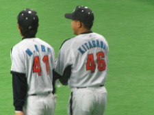 | 2打席目の前に 正田コーチに呼びとめられます |