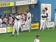 8回北川の内安打で 代走大西が生還 ナイス走塁 |