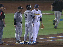 死球を受けた小笠原選手を心配そうに見ていました・・・