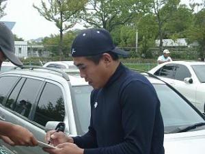 | 大塚選手。ファンの人が 「大塚さんサイン下さい」と 声を掛けたら すぐに振り向いてくれていました。 |