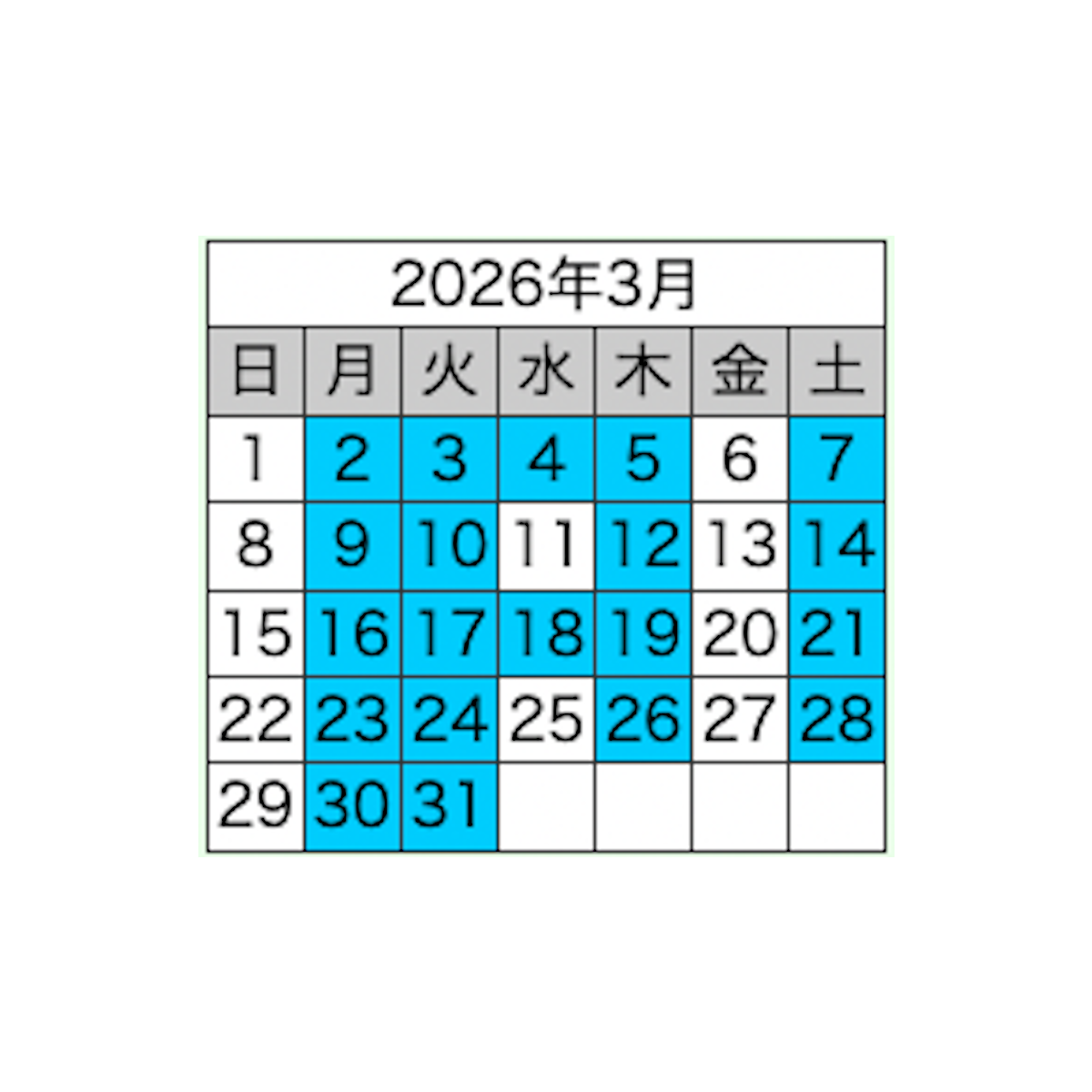 カレンダー水色の日が診察日です。