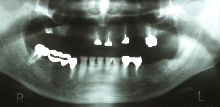 上顎に8本、下顎に3本のインプラントを植立しました。