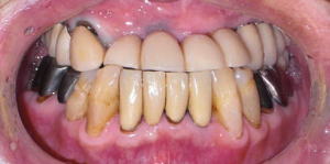 上顎に1本のみ歯が残っていますが、ほぼ総入れ歯です。りんごなどとても噛めませんでした。