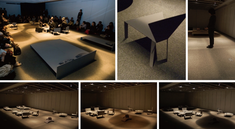 遠藤照明のショールームで行われたイベント「くらしとあかりプロジェクト」に建築家、棚瀬純孝氏とのコラボレーション展示を行いました。家の中に暗がりをつくり出し、家族の各々の居場所を緩く分節化する「暗がりのカタチ」(シャドー・フォーム)をテーマにしています。