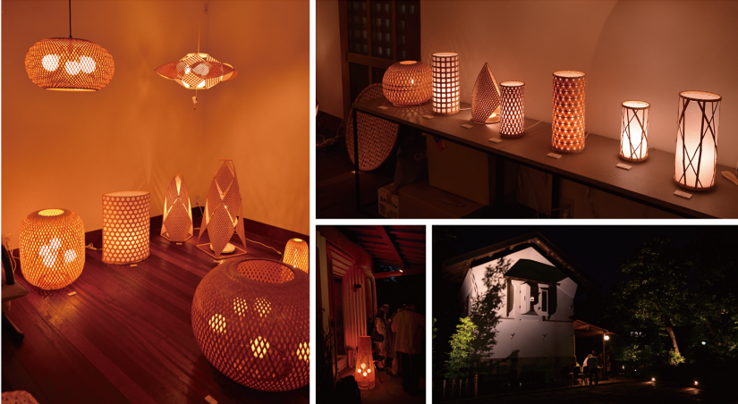 蔵のギャラリー「蒼」において、竹のあかりで著名な近藤昭作先生の展示会が行われ、展示会のプロデュースと庭のライトアップを担当しました。