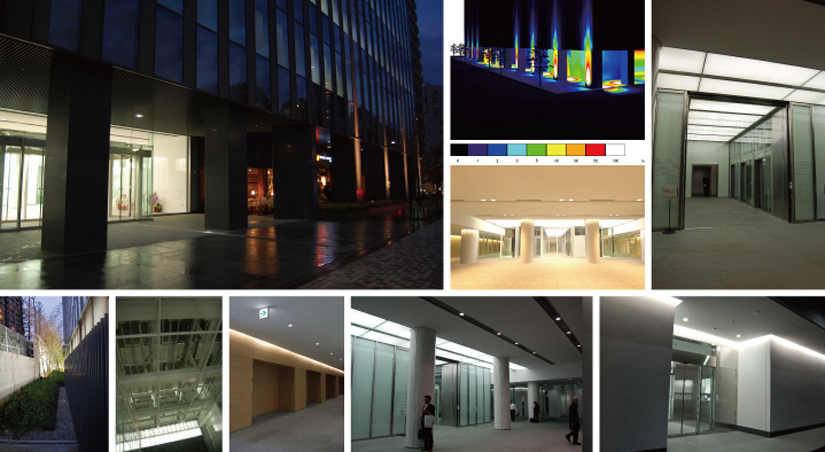 主要な壁面を間接照明することで、奥行き感だけでなく誘導効果も高めるように配慮しました。外壁においては植栽部分からスポットライトで柱の鉛直面を強調するようライトアップを行い、暖かな光色との相乗効果で歩道を歩く住民の方にも親しみやすい雰囲気を演出しています。