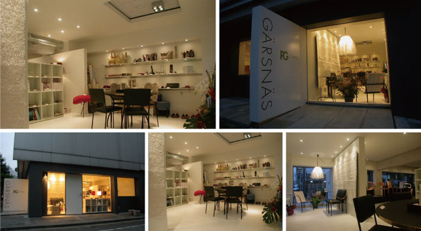 PGギャラリーはコアド&マテリアルズのショールームとして、落ち着いた雰囲気の中で商品を確認できるように照明計画を行っています。家具やインテリア小物も取り扱っているため、壁の鉛直面を照明することで、店舗の中を見えやすくし、入りやすさを高めています。