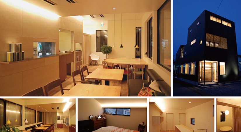 2階と3階は、住居で、建築の形状に合わせて間接照明で柔らかく照明しています。