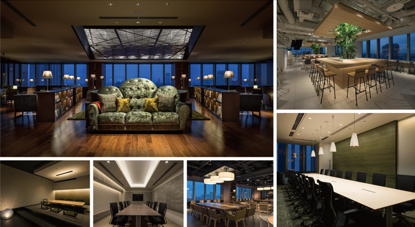 JPタワー名古屋の13階にあるテナントサポートフロアで、ラウンジ、会議室、カフェ、食堂、コンビニなどで構成されています。それぞれの場所の行為や雰囲気に合わせて、明るさ感が必要な会議室と食堂は4000K、くつろいだ雰囲気のラウンジは2700K、カフェは3000Kと光色と明るさを使い分けることで、それぞれのインテリアの特性を生かした照明演出となっています。