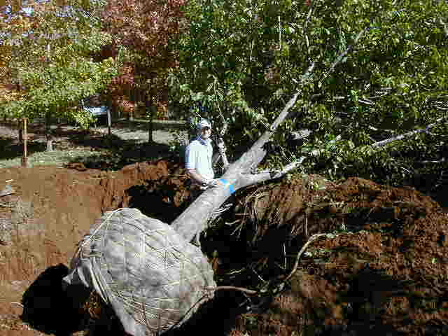 Kobushi Magnolia kobus being lifted and root-balled in October