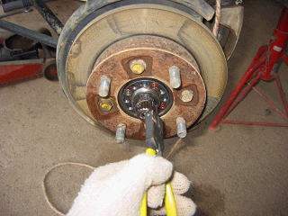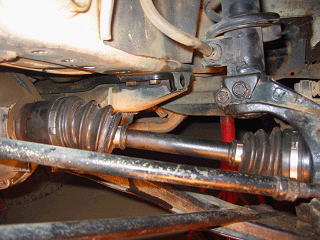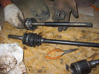 ナックルを外しハブからドライブシャフトを抜き取ります。