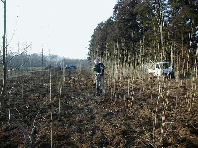 Replanting began during December. 25 Ginkgo, between 12 - 18 meters in height were felled to make way for the re-building of the nursery. The root systems were excavated and the soil dug over. Fertilizer was added to improve fertility. Replanting was carried out at two meter spacings.