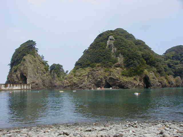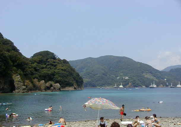 某海水浴場は50mほどの玉石の浜の小さな 海水浴場です。 |