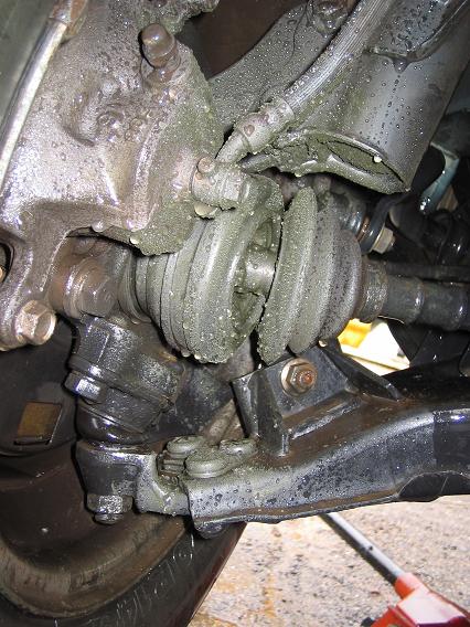 フロント外側のドライブシャフトブーツは、ハンドルを切るたびに曲げられるので最も早く痛みます。