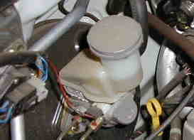 慣れてくるとブレーキフルードの液面でブレ−キパットの減り具合の見当がつきます。 ブレーキフルードを補充する時は、他種のブレーキフードとの混合を避ける為、販売店で補充してもらいましょう 多分無料で補充してくれると思います。 写真右下の黄色い部品は、エンジンオイルのレベルゲージの先端です。 一度抜き取ってオイルをふき取ってから差し込んでもう一度抜き取りエンジンオイル量汚れを点検します。 |