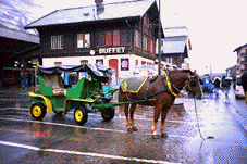 ツェルマットには冷たい雨が降っていた。街は灰色に色褪せ、雪解けの水は道を濡らし、馬の糞を流し広げている。それに我々のホテルは街のはずれにあり、駅からは賑やかな所を全然通らなかったので、なんだかもの寂しいところだなと思ったのがこの街の第一印象だった。午後3:00宿ではまずシャワーを浴びてくつろいだ。4:30頃近くのコインランドリーに5日間はき